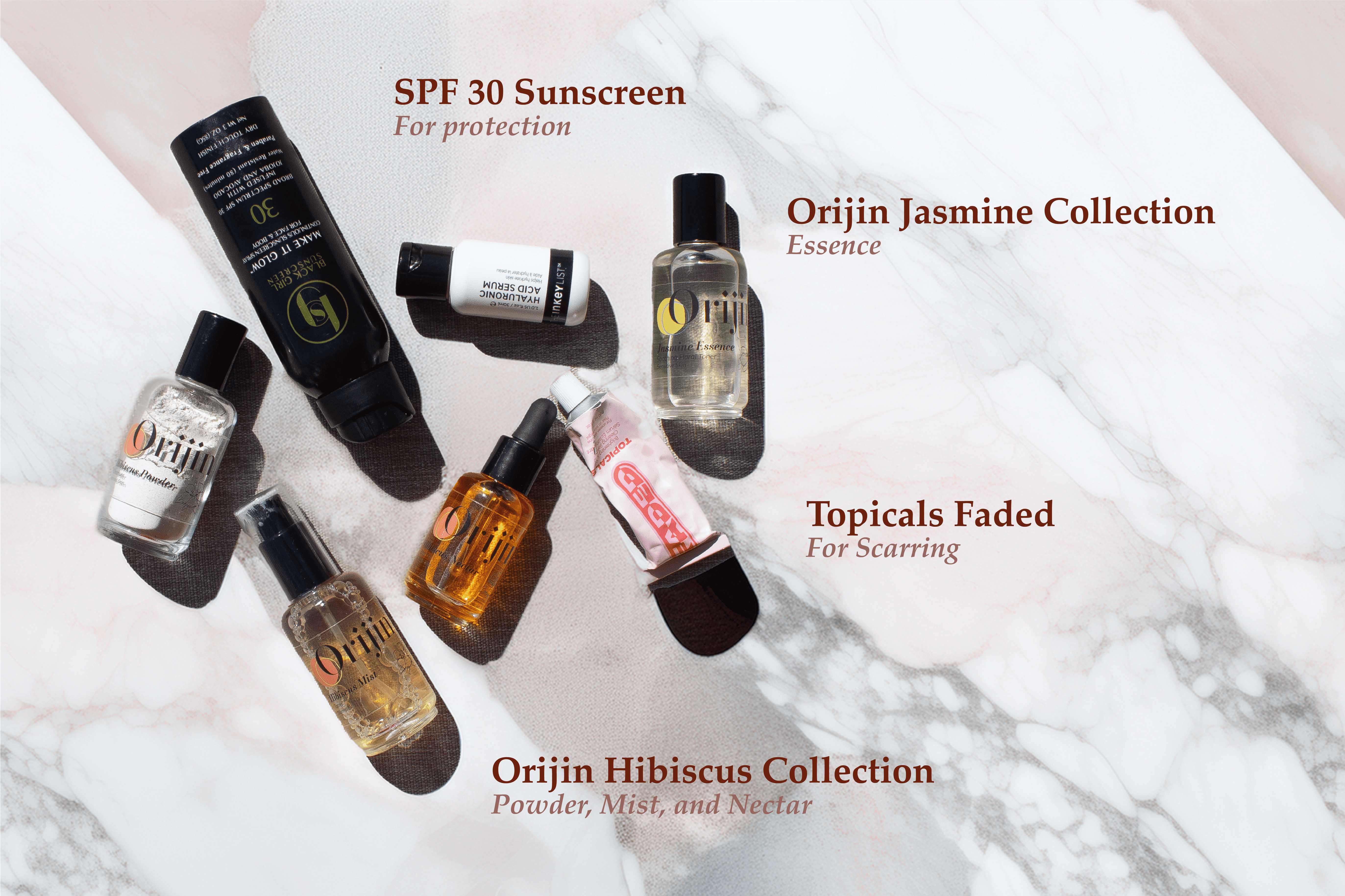 Right now I’m battling hyperpigmentation. I was incredibly stressed and anxious late last year and earlier this year, and that resulted in scarring on my face. But Orijin is what I trust across all my skin states.
